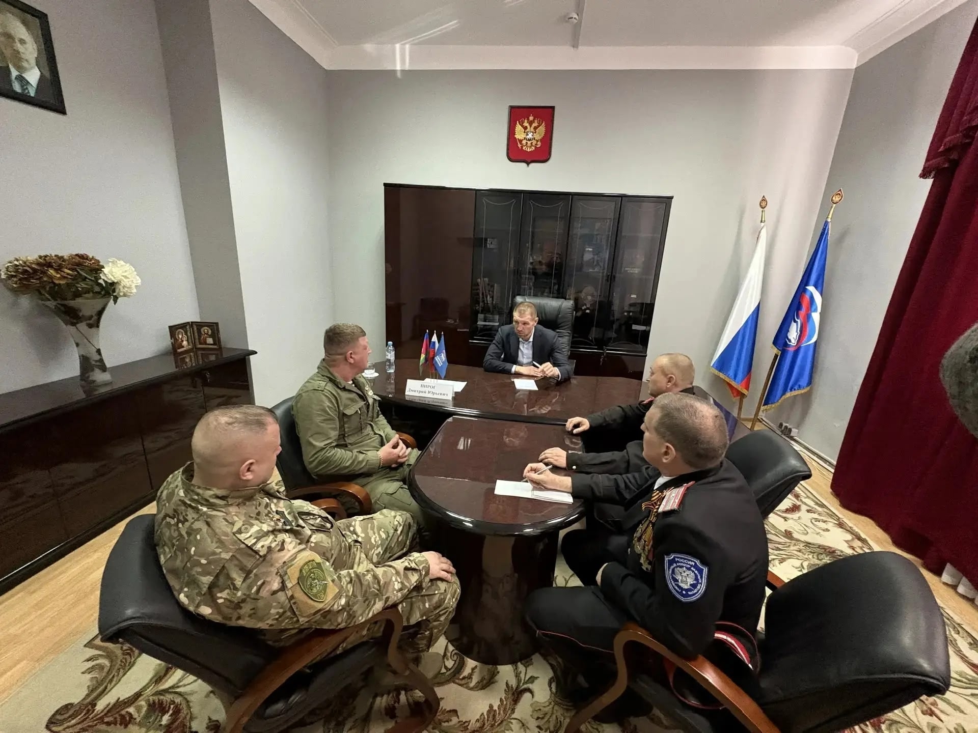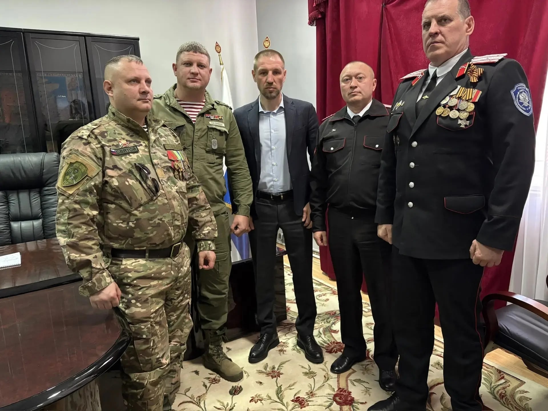 С атаманом Екатеринодарского районного казачьего общества Андреем Белоусовым обсудили возможности казачества в охране правопорядка краевой столицы и участие казаков в специальной военной операции. В обществе состоит свыше 1,7 тыс. казаков, несколько сотен из них принимают участие в СВО с учетом ротации, свыше ста несут государственную службу. Добровольные народные дружины совместно с сотрудниками полиции охраняют общественный порядок в Краснодаре, участвуют в рейдовых мероприятиях по противодействию незаконной миграции и профилактике безнадзорности.